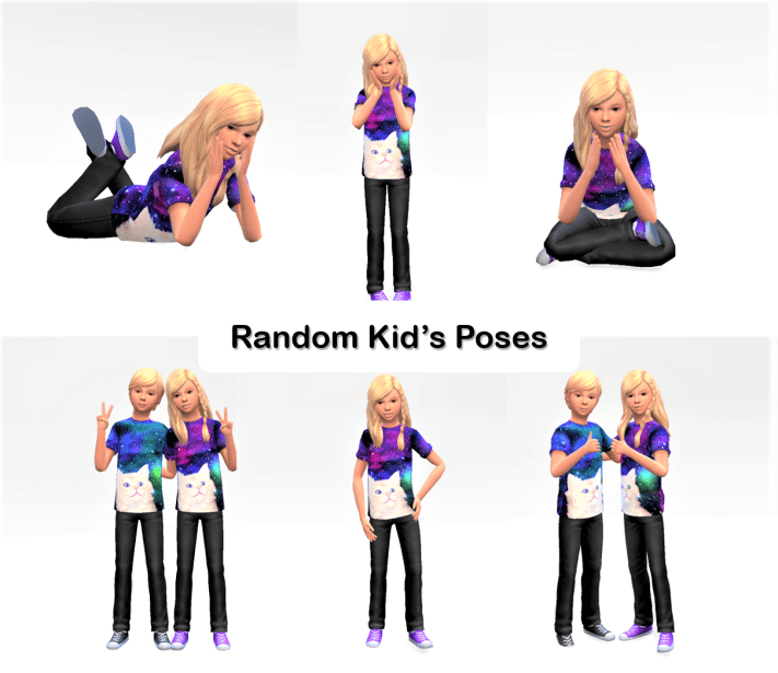 Another pose pack, this time for children. Using my twins Bethany & Branden from my Hayden Legacy, and wearing the coolest shirt in the game. Seriously, I love that cat shirt.